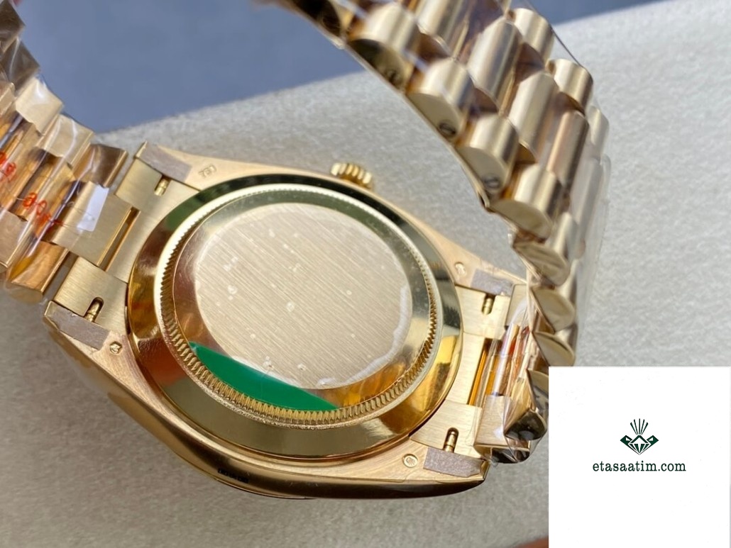 Bu saat, paslanmaz çelik ve 18K beyaz altının mükemmel bir birleşimi ile tasarlanmıştır. Beyaz kadran, klasik görünümünü artırırken, Başkan tarzı kayış konfor ve dayanıklılık sunar.